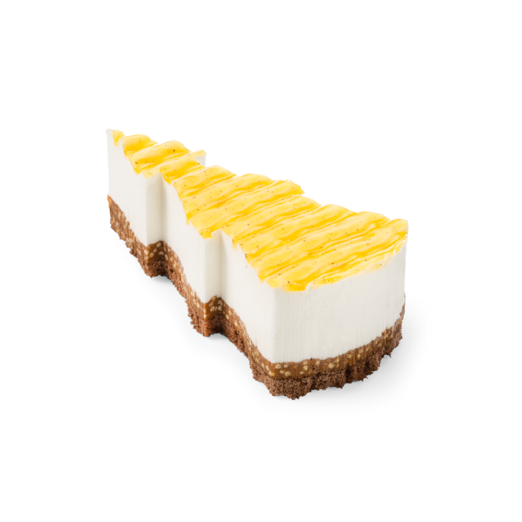 Het ultieme Kerst dessert in de vorm van een Kerstboom. Chocolade biscuit met een krokante karamel melkchocolade laag, fluweel zachte cheesecake bavarois en vanille gelei.