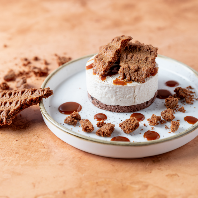 Caramel roomijs op een bodem van chocolade chips biscuit en rijkelijk gedecoreerd met Bastognekoek en caramel. U zet deze traktatie in een handomdraai op tafel. Rechtstreeks uit de vriezer.