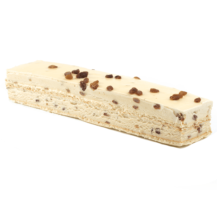 water, suiker, magere melkpoeder, roomboterconcentraat, ei, glucose-fructosestroop, (4%) rozijnen, dextrose, tarwebloem, glucosestroop, invertsuikersiroop, tarwezetmeel, (<1%) Jamaica rum (alcohol), emulgator (mono- en diglyceriden van vetzuren), rijsmiddelen (natriumcarbonaten, difosfaten), emulgatoren (esters van propaan-1,2-diol met vetzuren, mono- en diglyceriden van vetzuren veresterd met melkzuur), maiszetmeel, stabilisatoren