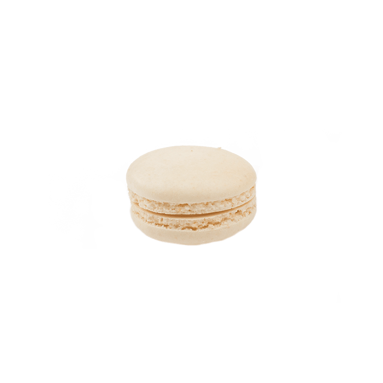 Witte macaronschelp, vulling is een ganache van ivoire chocolade met madagaskar vanille.