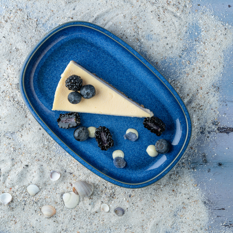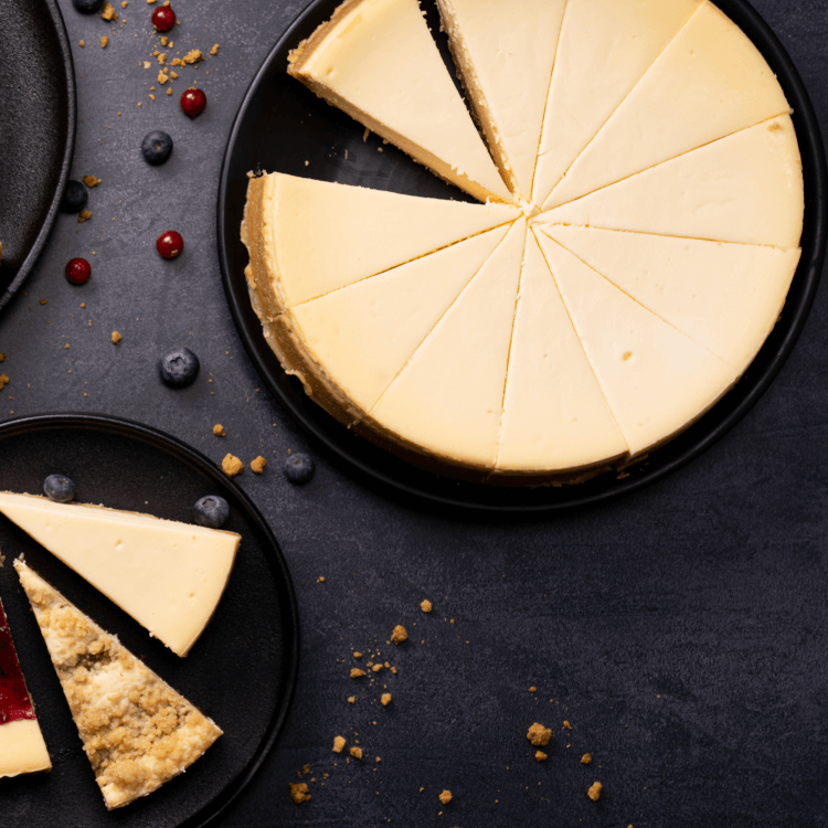 Klassieke cheesecake met koekjesbiscuit en roomkaasvulling. (voorgesneden in 12 punten)