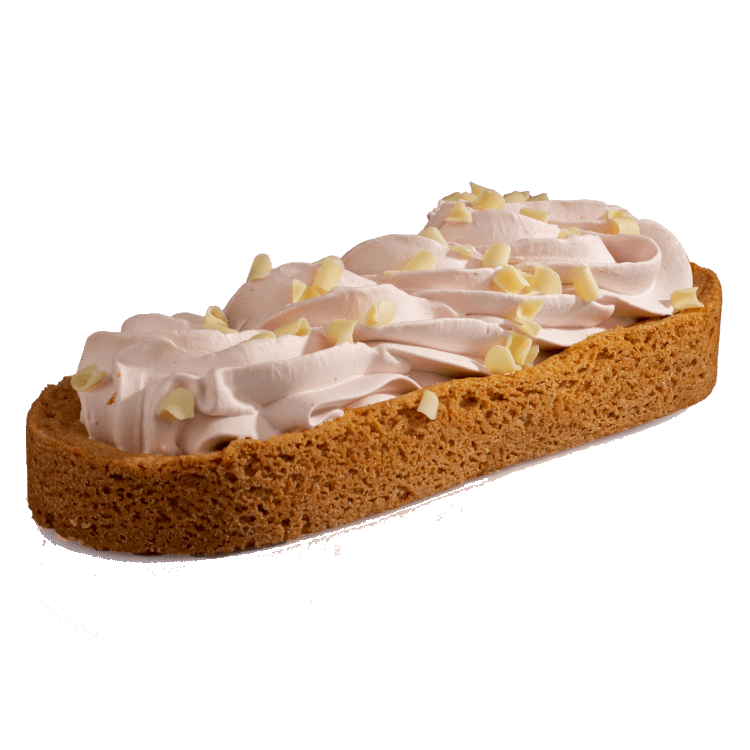 Sloffentaarten zijn inmiddels niet meer uit het taart assortiment weg te denken. En terecht want ze zijn heerlijk. Die krokante, maar toch ook wat taaie bodem die een prachtige gerezen zijkant laat zien. De slof is gevuld met een heerlijke bavarois van aardbeien.