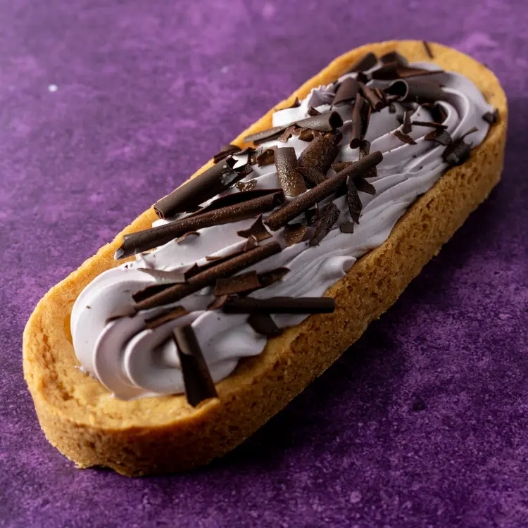 water, suiker, tarwebloem, roomboter, (5%) zwarte bessen, magere melkpoeder, ei, amandelen, plantaardige olie (kokos, koolzaad, palm, raapzaad), cacaomassa, plantaardig vet (shea, palmpit), gemodificeerd aardappelzetmeel, geleermiddel (gelatine (runder)), aroma, emulgatoren (mono- en diglyceriden van vetzuren veresterd met azijnzuur, mono- en diglyceriden van vetzuren veresterd met melkzuur, propyleenglycerolesters van vetzuren, mono en diglyceriden van