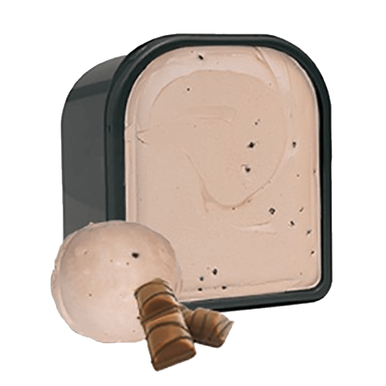 water, suiker, magere melkpoeder, roomboterconcentraat, plantaardige olie (zonnebloem), (2%) cacaomassa, (<1%) magere cacaopoeder, dextrose, lactose (melk), (<1%) hazelnoten, emulgator (mono- en diglyceriden van vetzuren, sojalecithine), stabilisatoren (johannesbroodpitmeel, guarpitmeel), (<1%) cacaoboter, melkvet, natuurlijk vanille aroma, tarwemeel, tarwemoutmeel, tarwezetmeel, verdikkingsmiddelen (natriumalginaat, carrageen), rijsmiddel
