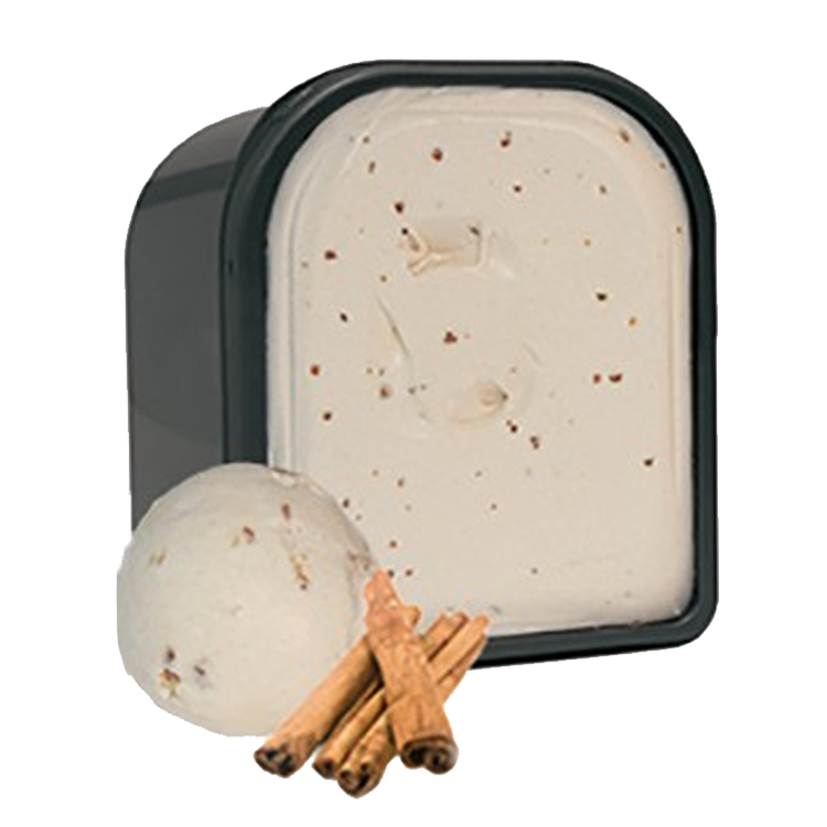 water, suiker, magere melkpoeder, roomboterconcentraat, dextrose, (<1%) kaneel, emulgator (mono- en diglyceriden van vetzuren), stabilisatoren (johannesbroodpitmeel, guarpitmeel), verdikkingsmiddelen (natriumalginaat, carrageen), gebrande suiker, voedingszuur (citroenzuur), (<1%) natuurlijk kaneel aroma, glucosestroop, natuurlijk aroma, kleurstoffen (karamel, anthocyanen).