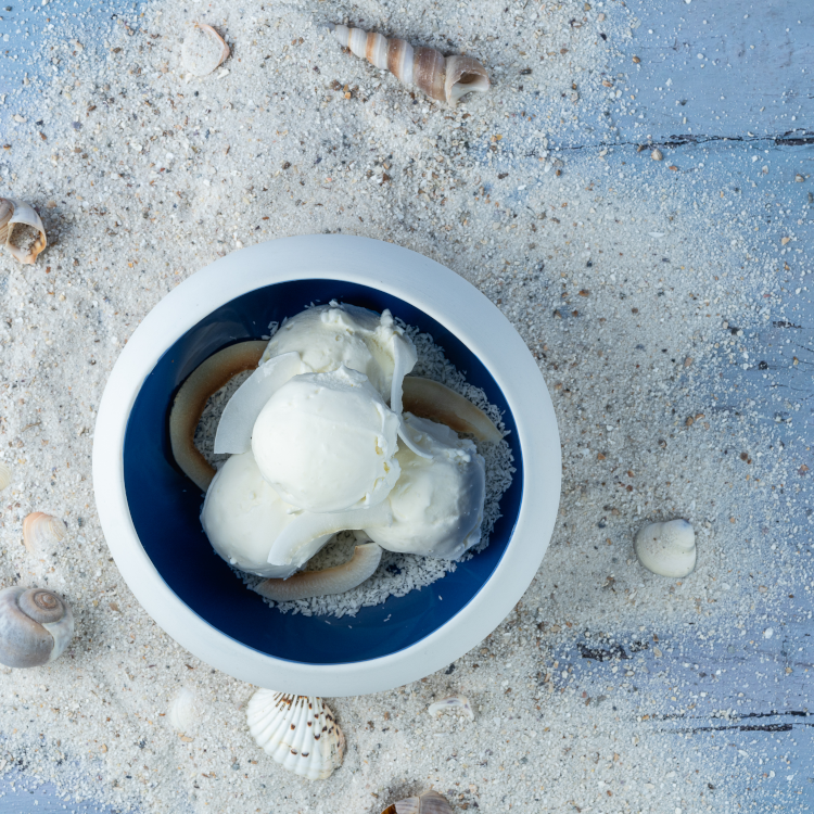 water, suiker, magere melkpoeder, roomboterconcentraat, (2%) kokos, dextrose, aroma, emulgator (mono- en diglyceriden van vetzuren, arabische gom), stabilisatoren (johannesbroodpitmeel, guarpitmeel), natuurlijk aroma, verdikkingsmiddelen (natriumalginaat, carrageen), conserveermiddel (natriumdisulfiet).