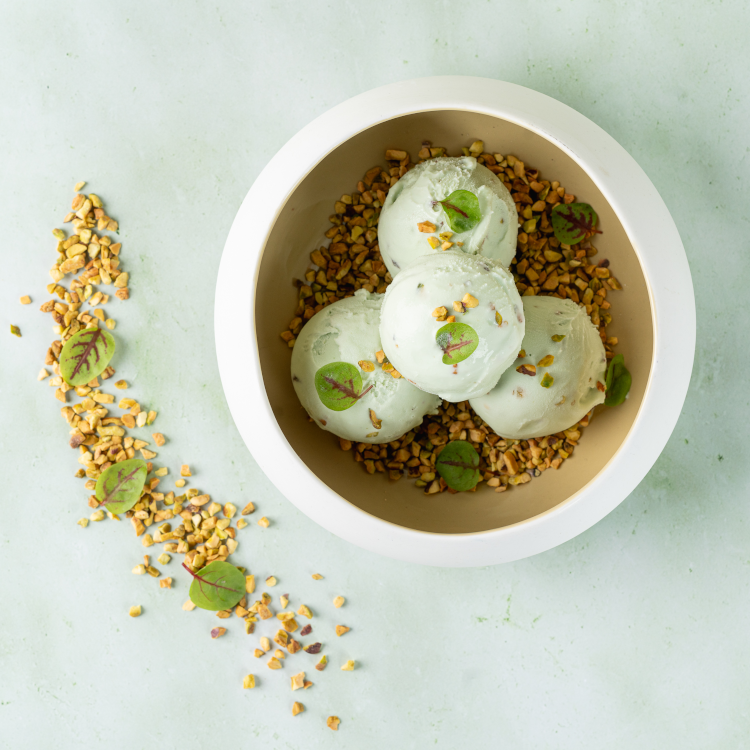 water, suiker, magere melkpoeder, roomboterconcentraat, (5%) geroosterde pistache noten, (2%) pistache noten, dextrose, plantaardige olie (zonnebloem), natuurlijk aroma, amandelen, stabilisatoren (johannesbroodpitmeel, guarpitmeel), verdikkingsmiddelen (natriumalginaat, carrageen), aroma, emulgatoren (mono en diglyceriden van vetzuren, sojalecithine), kleurstof (kopercomplexen van chlorofylen en