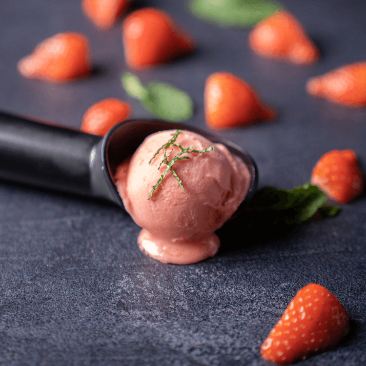Een verfrissende sorbet van aardbei.