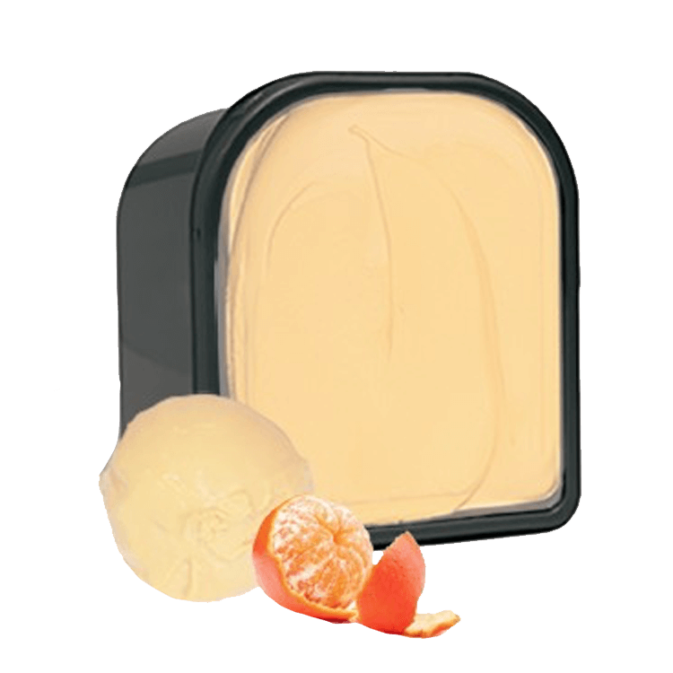 water, (30%) mandarijn, suiker, glucosestroop, dextrose, (<1%) mandarijn- en sinaasappelsap, natuurlijk aroma, kleurstoffen (beta-apo-8-carotenal, karmijnzuur, paprika extract), emulgator (mono- en diglyceriden van vetzuren), verdikkingsmiddelen (natriumalginaat, pectinen, xanthaangom), stabilisatoren (guarpitmeel, johannesbroodpitmeel), saffoer extract.